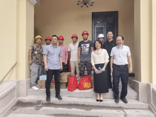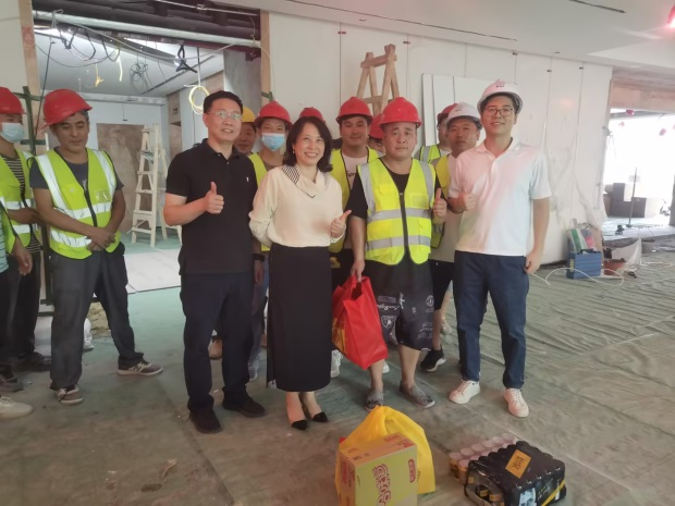 規(guī)劃院工會(huì)、總工辦工程專業(yè)總工一行聽取項(xiàng)目的情況匯報(bào),了解項(xiàng)目進(jìn)展情況及工期要求。規(guī)劃院工會(huì)馬云主席、總工辦曾國(guó)勝總工強(qiáng)調(diào),即使工期比較緊急,也要在保證安全的前提條件下趕工,確保每一位工人的人身安全。隨后發(fā)放清涼飲料、水果、零食等慰問品給工人,并向?yàn)橐?guī)劃院的建設(shè)付出辛勤勞動(dòng)的工人表示親切的問候和誠摯的感謝。