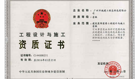 經(jīng)過不懈努力,我公司2011年3月25日獲得國家建設(shè)部頒發(fā)的建筑裝飾裝修工程設(shè)計與施工一體化一級資質(zhì)。這項資質(zhì)的通過,是公司提升市場競爭力的重要舉措,也為公司開展裝飾裝修設(shè)計與施工一體化業(yè)務(wù)的順利...