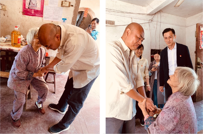 老人緊緊拉著院扶貧干部蔡慶立志的手,眼里充滿了感激之情