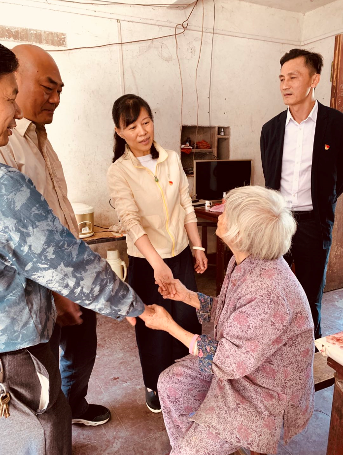萬錦英老人家中有三口人,其 53歲的兒子在外打工的同時要照顧視力一級殘疾的孫子,所以老人在黎塘村老屋的家中常常是一個人居住,平時飲食起居全靠老人自己。蔡慶立同志駐村后經(jīng)常關(guān)心老人的身體生活狀況,噓寒問暖,甚至為老人量腳上網(wǎng)購買合適的鞋;老人屋后出入的木橋破舊,存在安全隱患,駐村工作隊為老人籌資修建了結(jié)實的鐵板橋和護(hù)欄。老人拉著前來探望她的陳蓉書記,眼含熱淚,對幫扶單位和駐村工作隊一再表示感謝。老人腰腿不好,我們離開時鎖好她家后門不讓她送,她堅持走出二樓門外,站在新修的鐵橋邊,依依不舍目送我們離開……